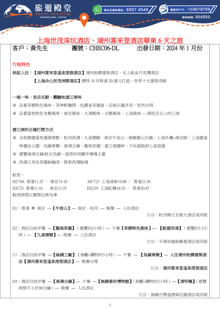 上海深坑酒店、湖州喜来登酒店華東6天之旅